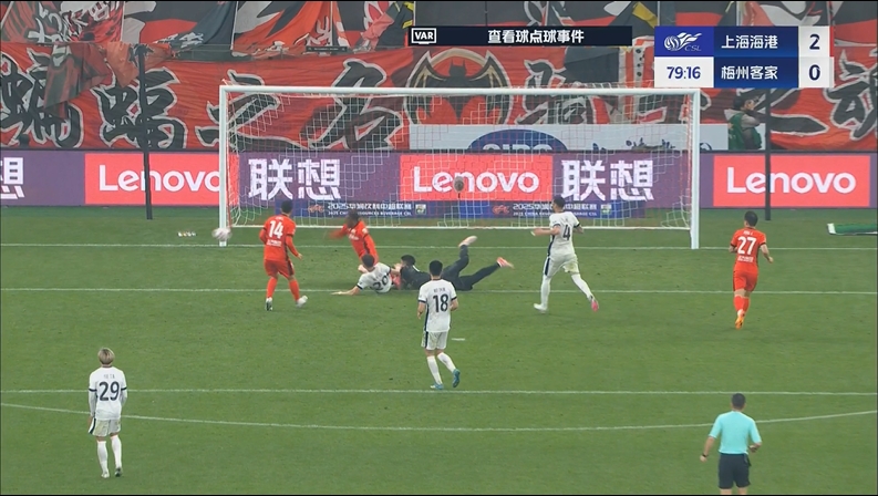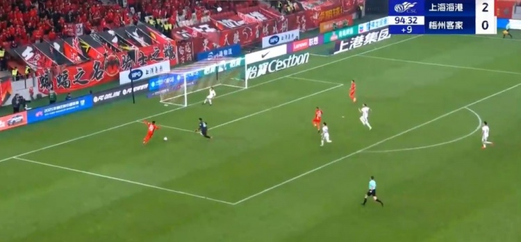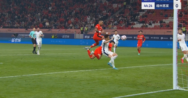 李圣龙替补头球建功!海港2球领先!第44分钟,维塔尔轻巧挑传,李帅下底传中到门前,李圣龙奋力头球冲顶破门,上海海港2-0梅州客家!↓