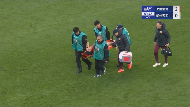 王振澳伤退!第45+5分钟,王振澳拼抢时受伤,被担架抬出场外,球员痛苦掩面!↓