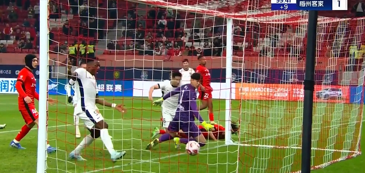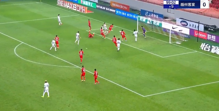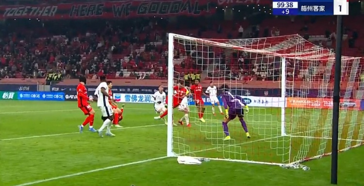 王燊超终场前自摆乌龙!第90+9分钟,恩戈姆主罚任意球开出,王燊超高难度凌空解围,不慎将皮球踢进自家大门,上海海港2-1梅州客家!↓