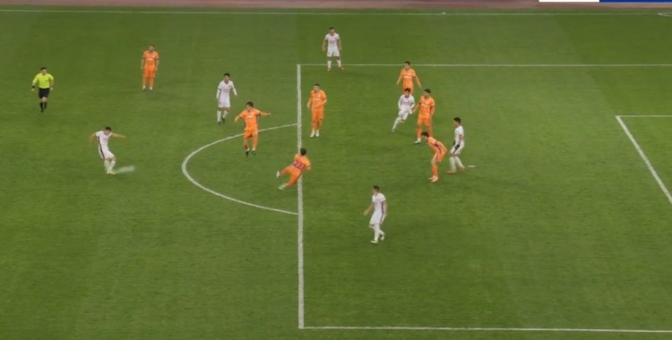 第5分钟,莱切特前场左路压上后送出横传,周定洋小禁区前沿回做,元敏诚禁区左侧爆射破门,成都蓉城1-0山东泰山。↓