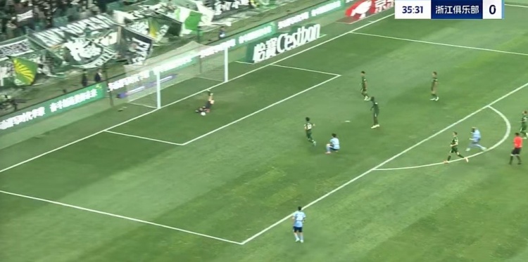 第88分钟,王钰栋右侧下底传中被解围,左侧浙江队再送传中,布彭扎鱼跃头球冲顶破门,但边裁举旗示意越位在先进球无效,比分仍为2-0↓