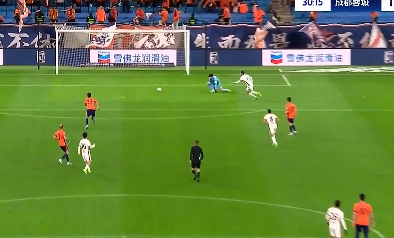 第29分钟,牟鹏飞接回传时脚下打滑送礼,德尔加多迅速抢前将球打进,成都蓉城1-0青岛海牛。↓