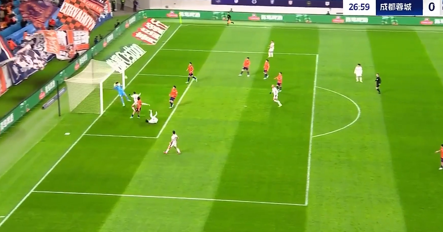 第26分钟,蓉城禁区右路挑高球送到门前,德尔加多近距离头球顶高。↓