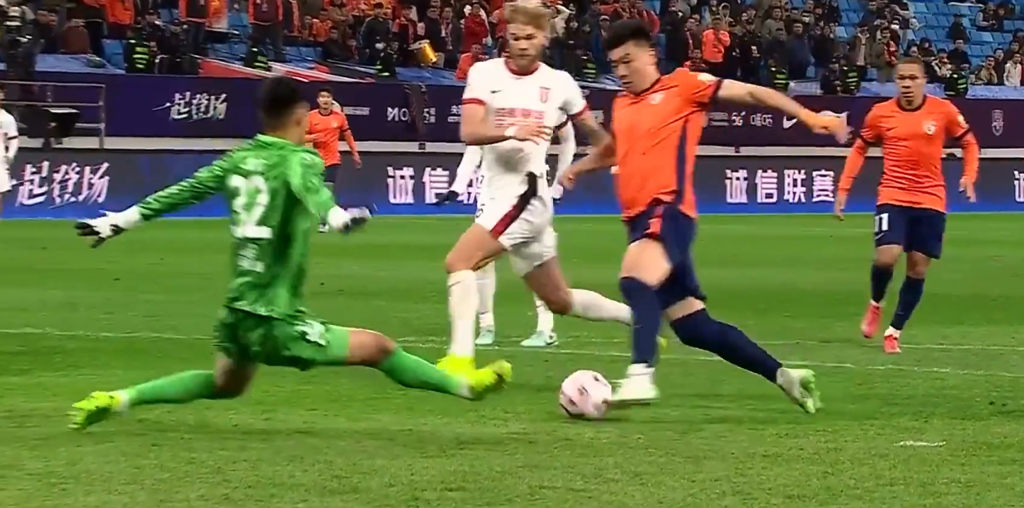 第21分钟,费利佩禁区左路倒三角回传,韦世豪跟进铲射打飞。↓