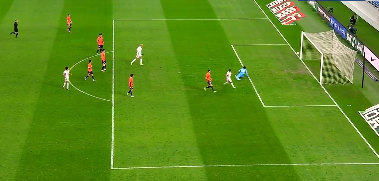 第14分钟,金永浩中路插上接队友斜塞小角度低射被门将扑住。↓