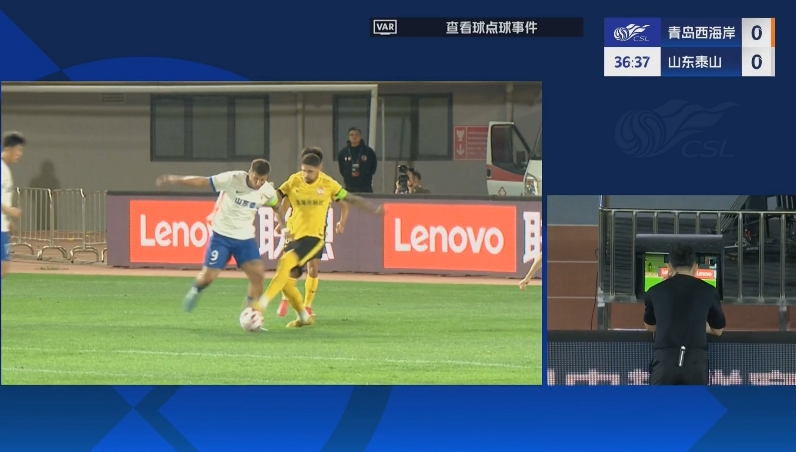第34分钟,克雷桑禁区内倒地,裁判第一时间没有判罚,经VAR介入后最终判罚点球!克雷桑主罚骗过门将稳稳推进!1-0!山东泰山改写了比分!↓