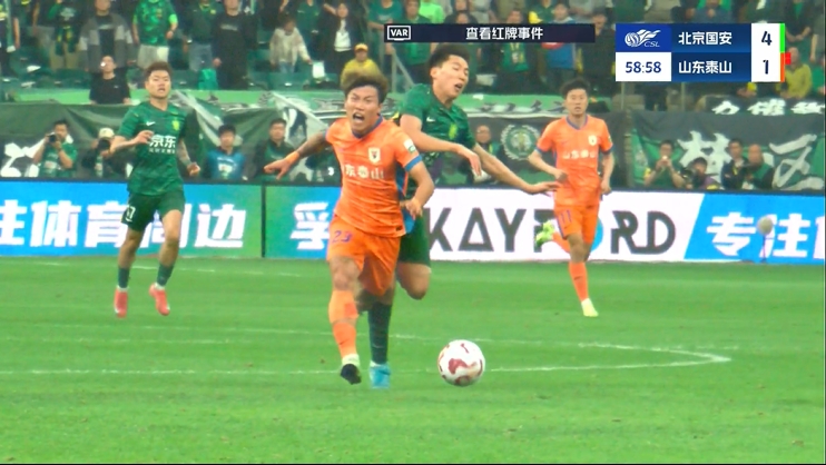 单场3直红!十人国安6-1九人泰山 主裁唐顺齐判罚抢镜 张玉宁传射