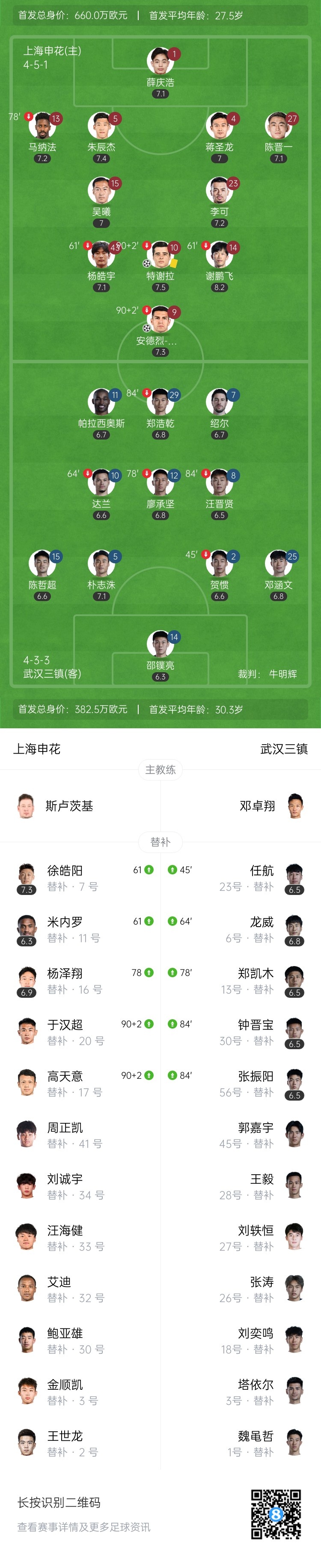【双方首发及换人信息】
