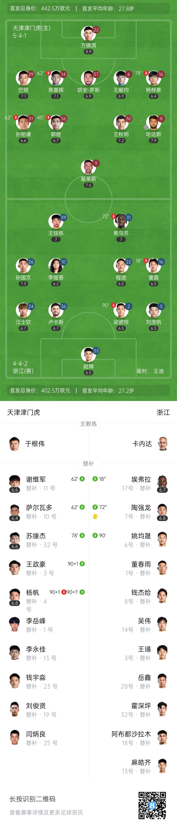 【双方首发及换人信息】