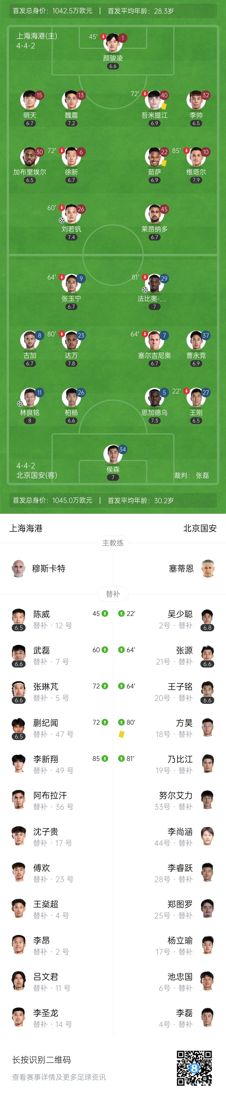 【双方首发以及换人信息】