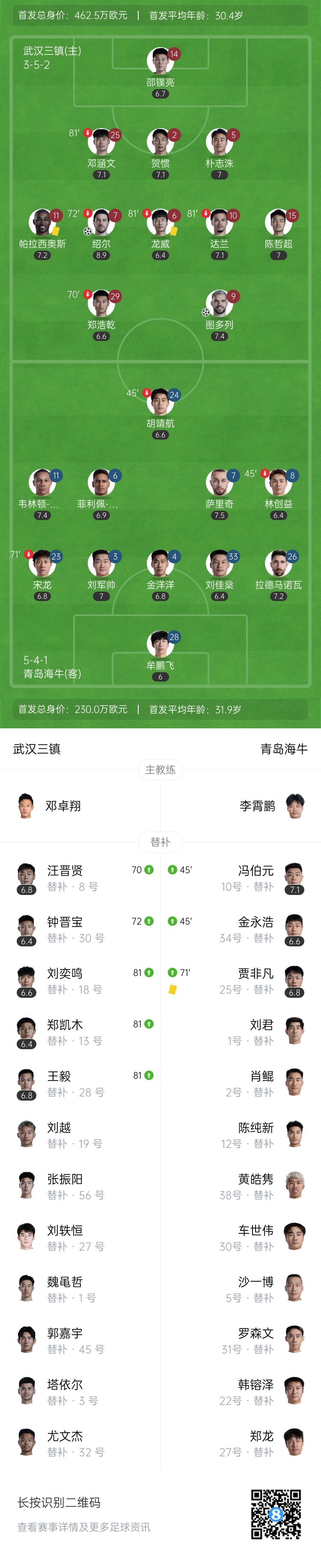 武汉三镇2-0青岛海牛近3轮首胜 图多列&绍尔破门海牛两度击中横梁