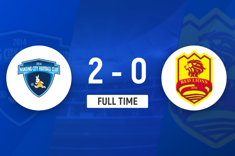 全场比赛结束,南京城市主场2-0战胜青岛红狮。