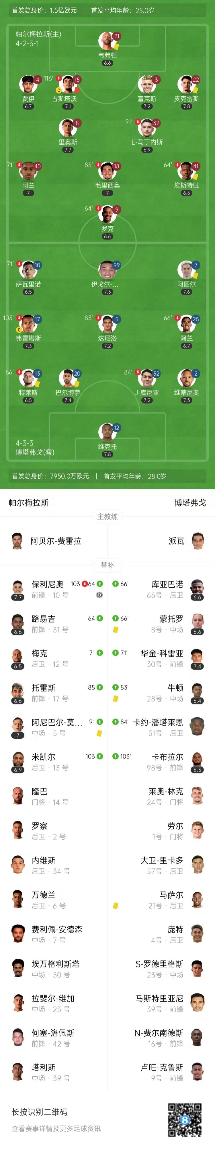 第96分钟,帕尔梅拉斯外围再度尝试远射被门将飞身扑出底线。↓