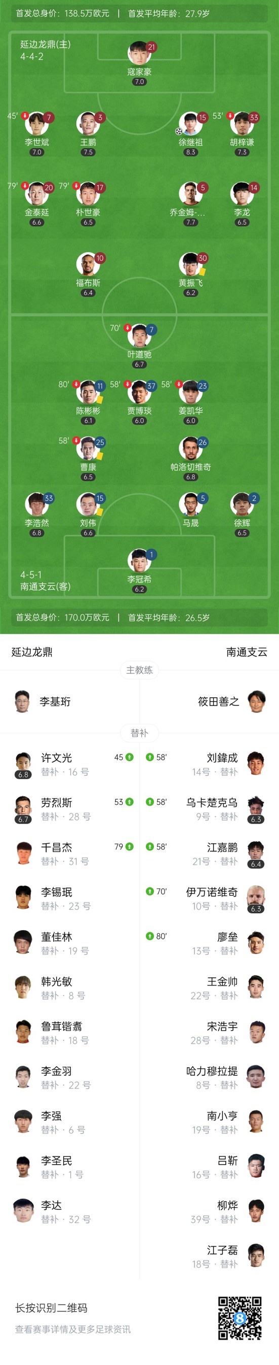 中甲-延边龙鼎1-0南通暂升第4 多明戈斯助攻徐继祖头球破门制胜
