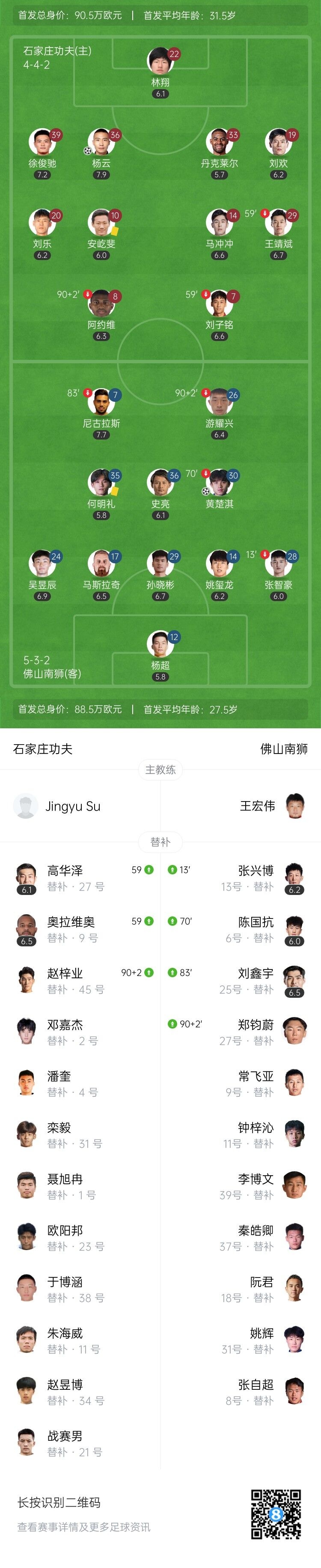中甲-石家庄2-2佛山 南狮5轮不胜高出降级区3分,功夫距榜首7分