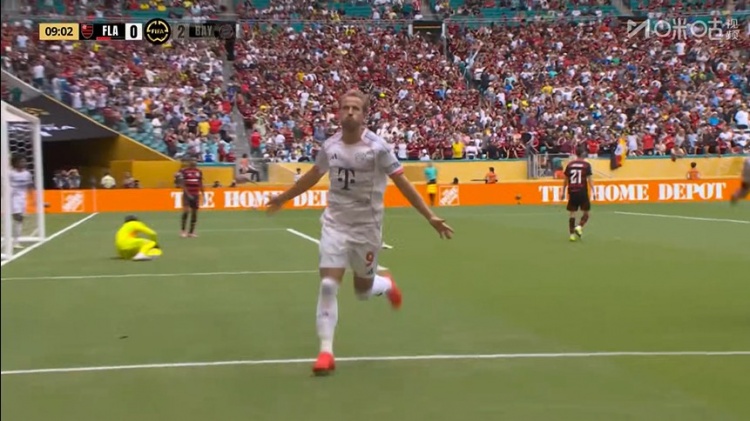 第9分钟,于帕梅卡诺中场位置完成抢断,凯恩得球稍作调整起脚远射,皮球擦着立柱钻入网窝,拜仁2-0领先↓