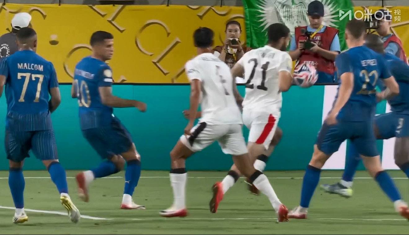 第56分钟,马尔科姆突入禁区被铲倒,主裁判判罚点球!但随后边裁举旗示意越位!点球取消↓