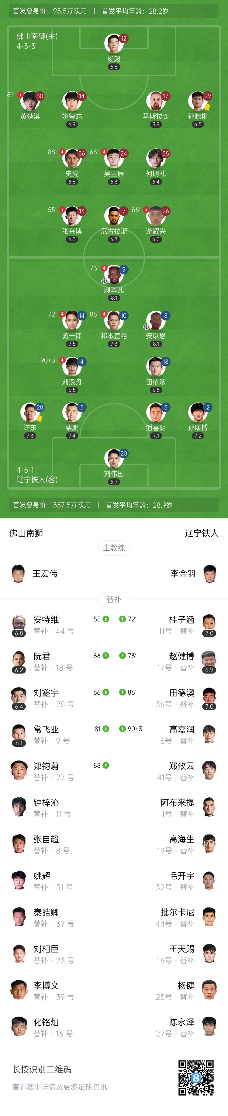 13轮不败!辽宁铁人2-0佛山南狮居榜首 佛山6轮不胜仅高降级区2分