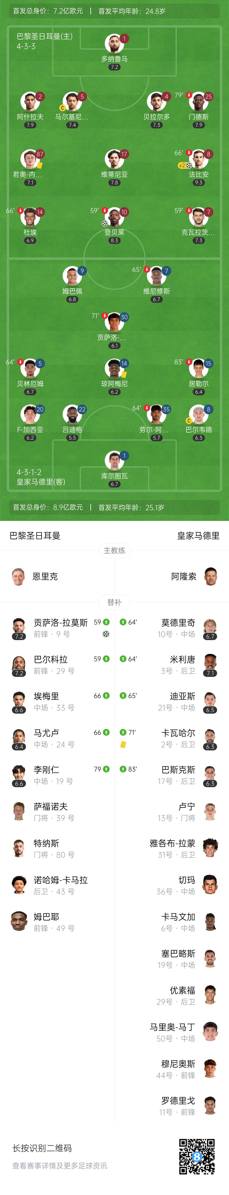 下半场没给补时。最终全场比赛结束,巴黎4-0皇马。