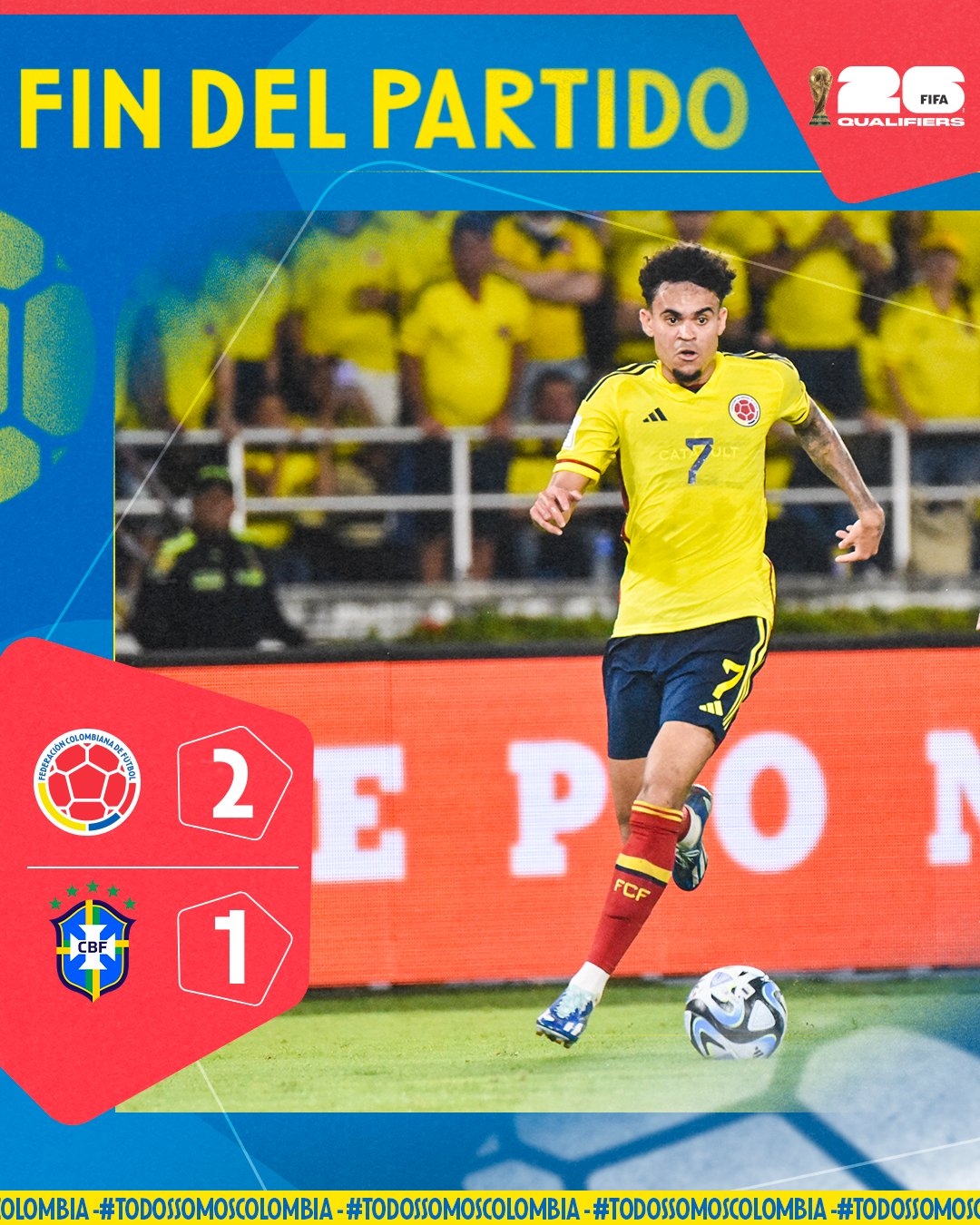第75分钟,阿斯普里拉左路传中,迪亚斯小禁区头球破门!巴西1-1哥伦比亚↓