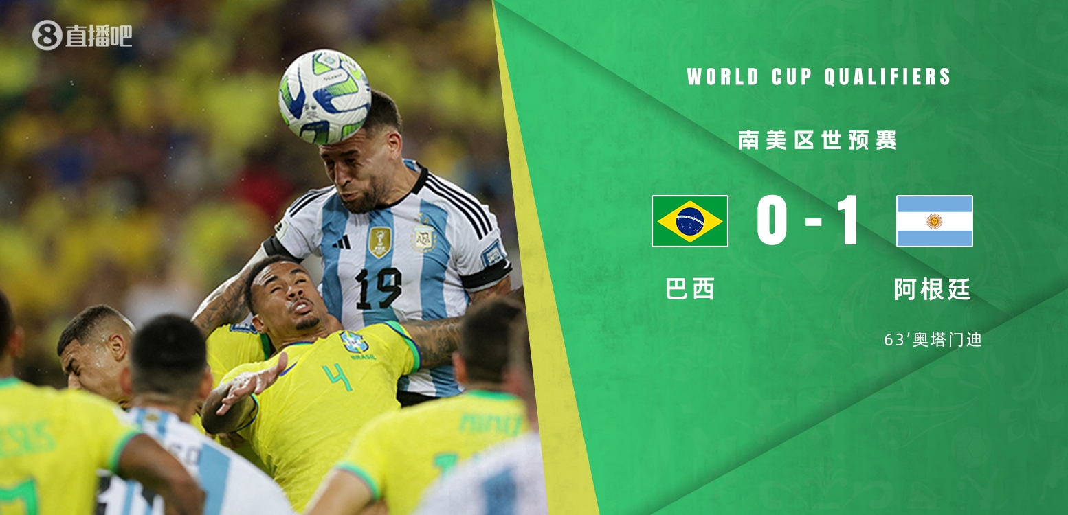 11月22日讯 北京时间11月22日8:30,世预赛南美区第6轮,巴西迎战阿根廷。比赛还没开始,球迷先爆发冲突,比赛推迟了接近半小时后开始。上半场双方对抗激烈,巴西半场1次射正,阿根廷0射正,两队暂0-0战平;下半场马丁内利失单刀,奥塔门迪破门,替补登场的乔灵顿直红,最终巴西0-1阿根廷,世预赛4轮不胜,阿根廷积15分,反超先赛的乌拉圭,回到积分榜榜首。