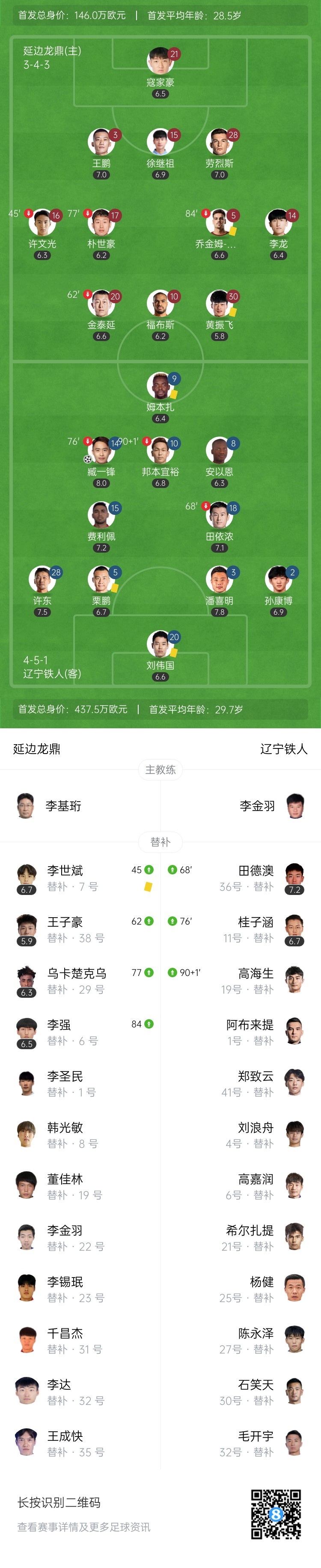 7月26日讯 北京时间18:00,中甲第18轮延边龙鼎vs辽宁铁人。上半场,双方均无建树。下半场,潘喜明助攻臧一锋破门!最终,辽宁铁人1-0战胜延边龙鼎,取得中甲4连胜+16轮不败!继续领跑中甲积分榜。