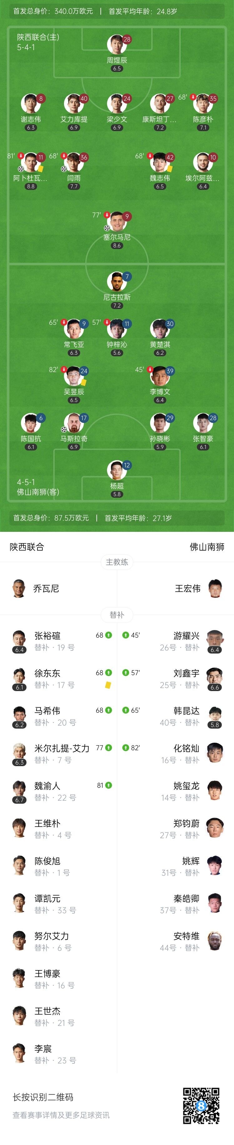 中甲-陕西联合3-1佛山南狮终结3轮不胜 塞尔马尼首秀1传1射