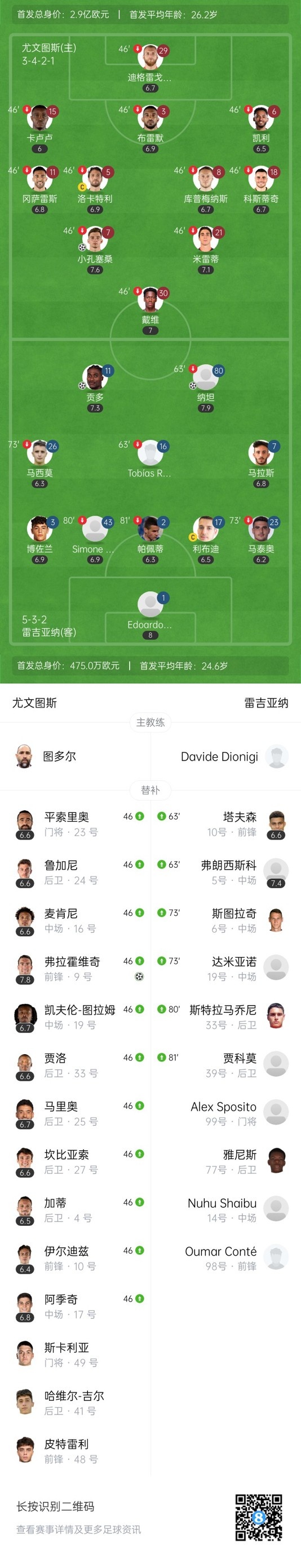 第71分钟,雷吉亚纳扳平比分!弗朗西斯科左路传到门前贡多头球吊射破门,尤文2-2雷吉亚纳。↓