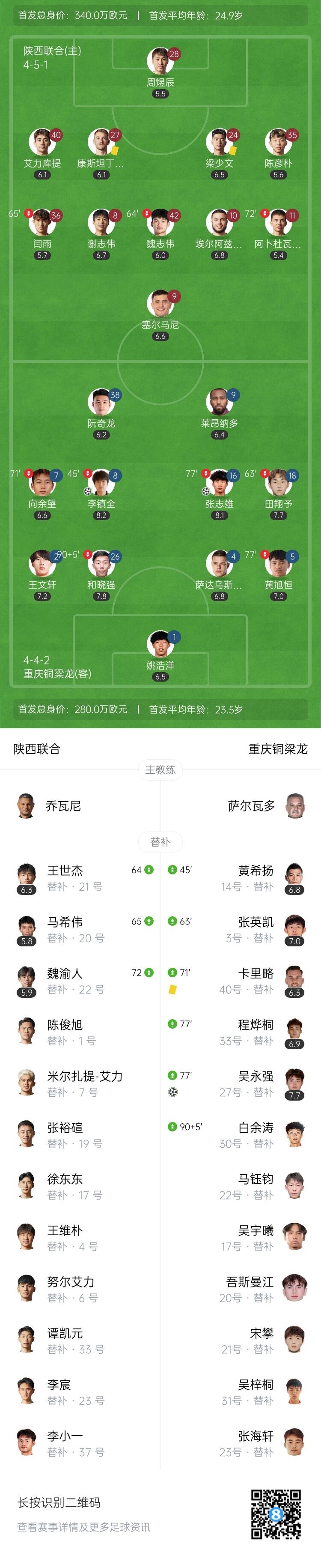 伤停补时10分钟。全场比赛结束,陕西联合0-3重庆铜梁龙。