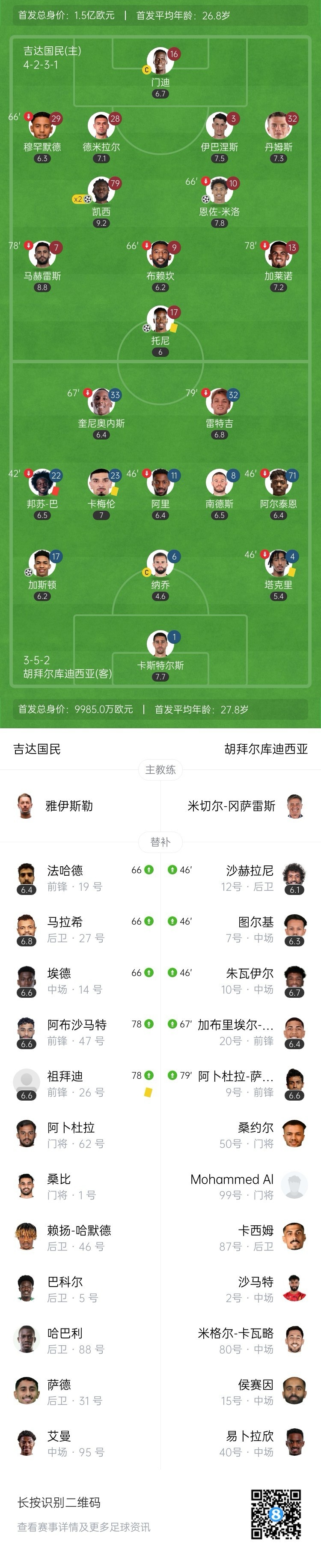 全场比赛结束,吉达国民5-1击败库迪西亚晋级沙超杯决赛,他们将对阵利雅得胜利。