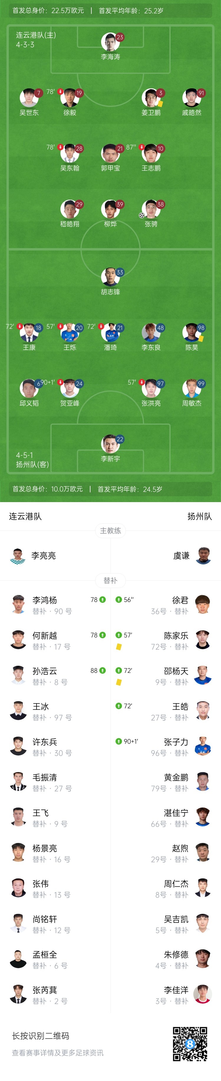 江苏联-连云港队1-0扬州队 张骋制胜球嵇皓翔失良机