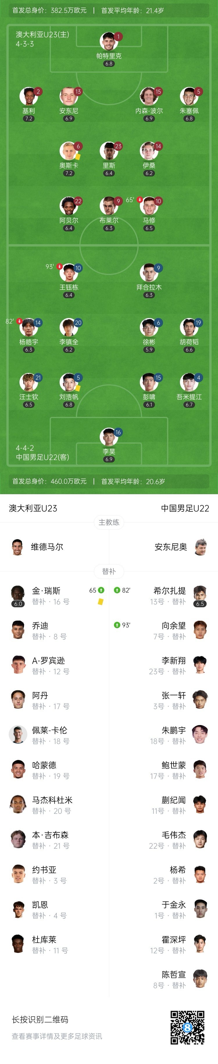 进军U23亚洲杯!U22国足0-0澳大利亚携手出线 李昊神扑救险
