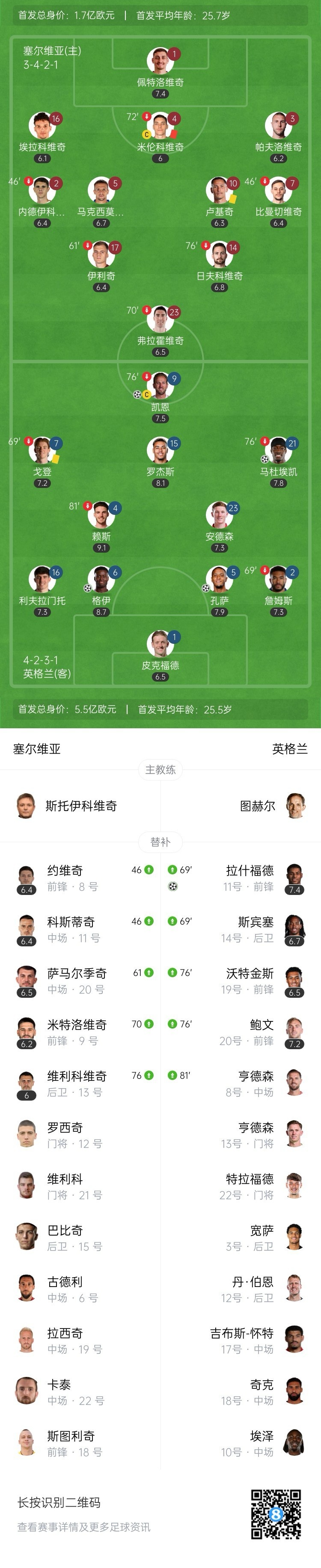 9月10日讯 北京时间9月10日凌晨2时45分,世预赛欧洲区小组赛K组第6轮,英格兰做客红星体育场对阵塞尔维亚。上半场,凯恩首开纪录,马杜埃凯扩大领先优势。英格兰半场2-0领先塞尔维亚。下半场,孔萨破门,米伦科维奇染红,随后格伊打进一球,拉什福德点射破门。最终英格兰5-0大胜塞尔维亚,继续以全胜战绩在小组中领跑。