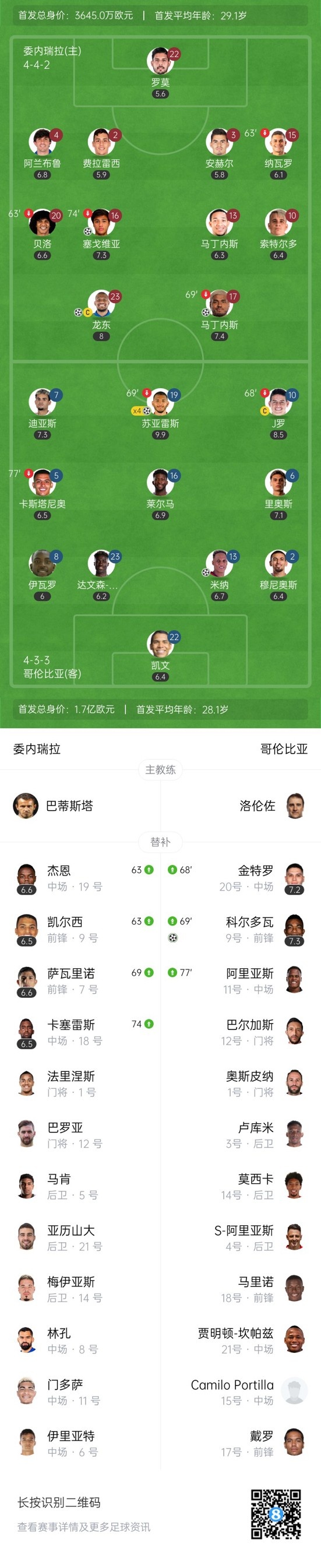 下半场没有补时,委内瑞拉3-6哥伦比亚。