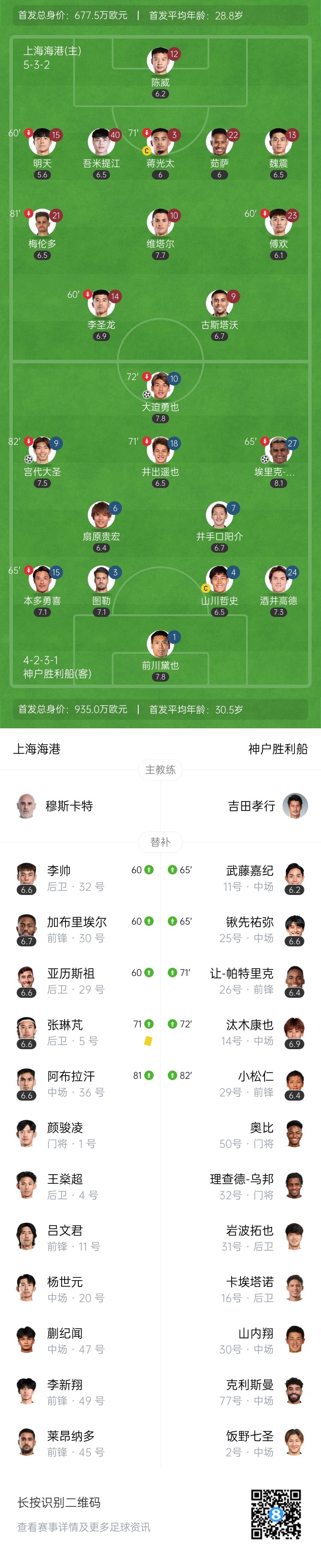 第41分钟,神户胜利船右路攻势,埃里克-利马传中到后点位置,宫代大圣鱼跃头球破门!上海海港0-2落后神户胜利船↓