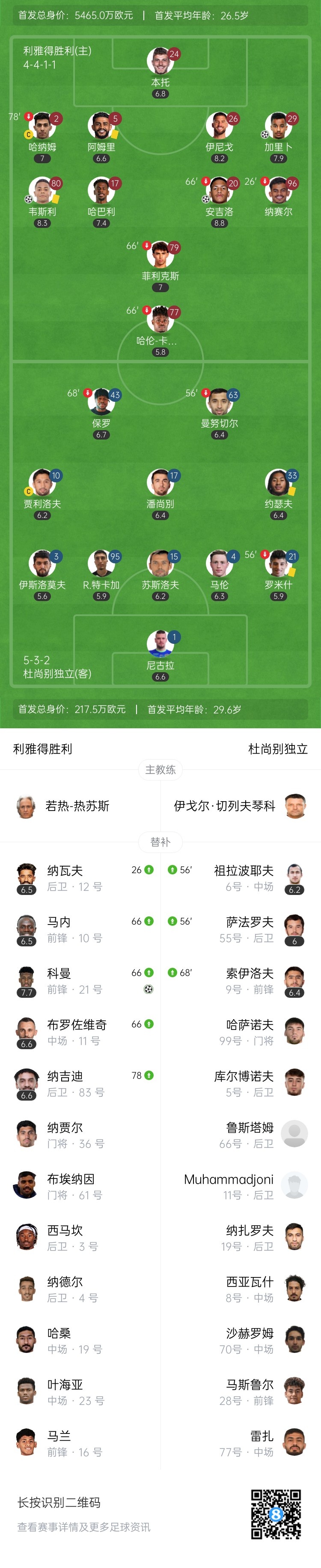 9月18日讯 亚冠二级小组赛D组第1轮,利雅得胜利坐镇主场沙特国王大学体育场迎战杜尚别独立。上半场加里卜、安吉洛破门。易边再战,韦斯利再下一城,科曼锁定胜局,马内锦上添花。最终利雅得胜利5-0杜尚别独立。积分榜方面,胜利收获开门红积3分,杜尚别独立0分。