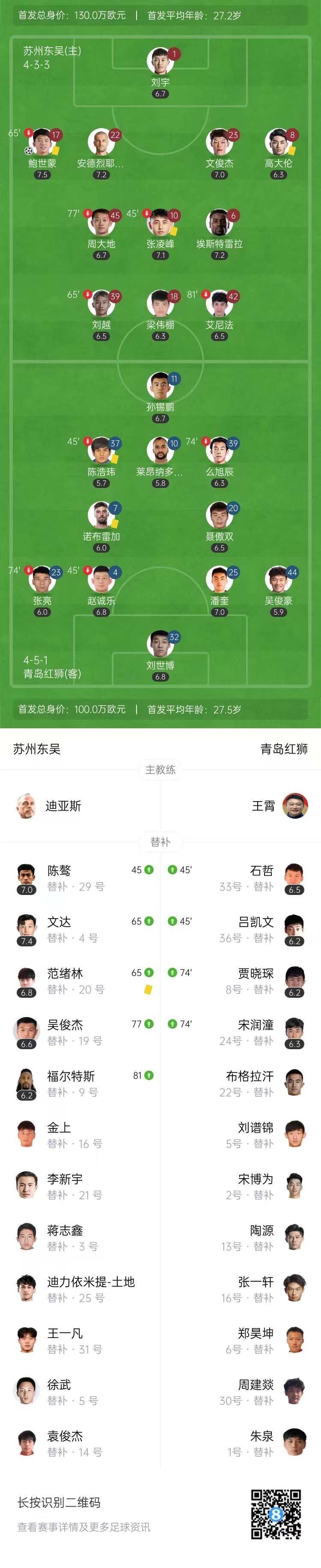 中甲-苏州东吴1-0青岛红狮结束6轮不胜 鲍世蒙开场3分钟破门
