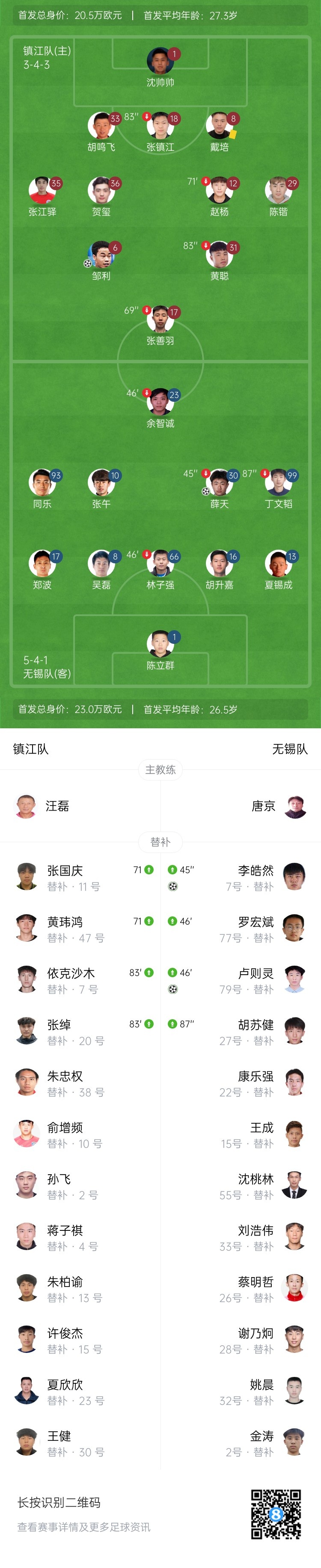 苏超-无锡5-2客场大胜镇江 李皓然双响同乐、薛天、卢则灵破门