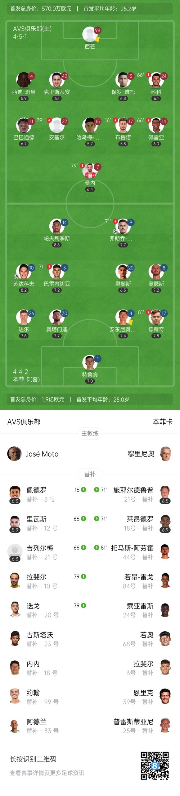 下半场补时4分钟,AVS俱乐部0-3本菲卡。