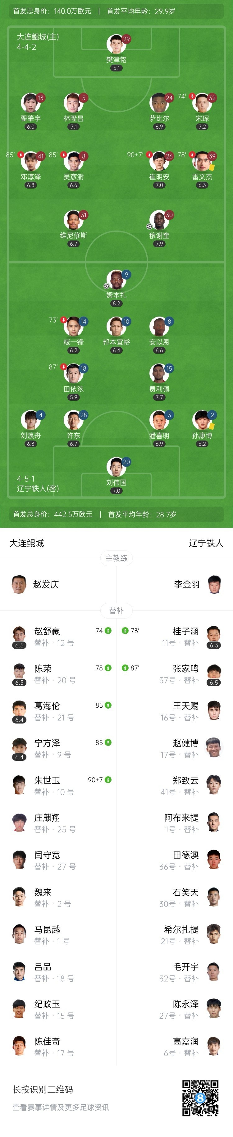 两轮不胜!辽宁铁人1-1大连鲲城 姆本扎22球领跑射手榜穆谢奎破门
