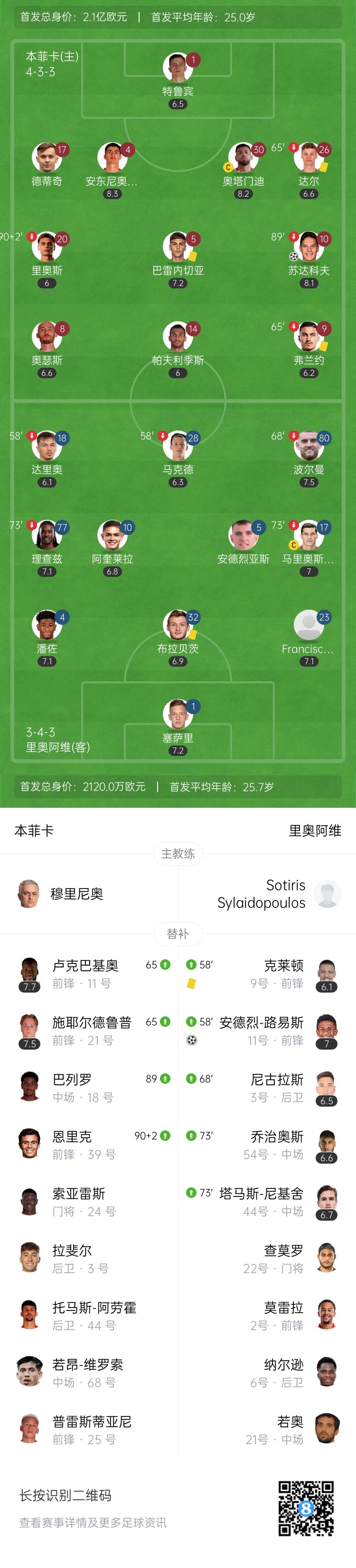 绝杀后遭绝平!本菲卡1-1里奥阿维 球队86分钟破门91分钟丢球