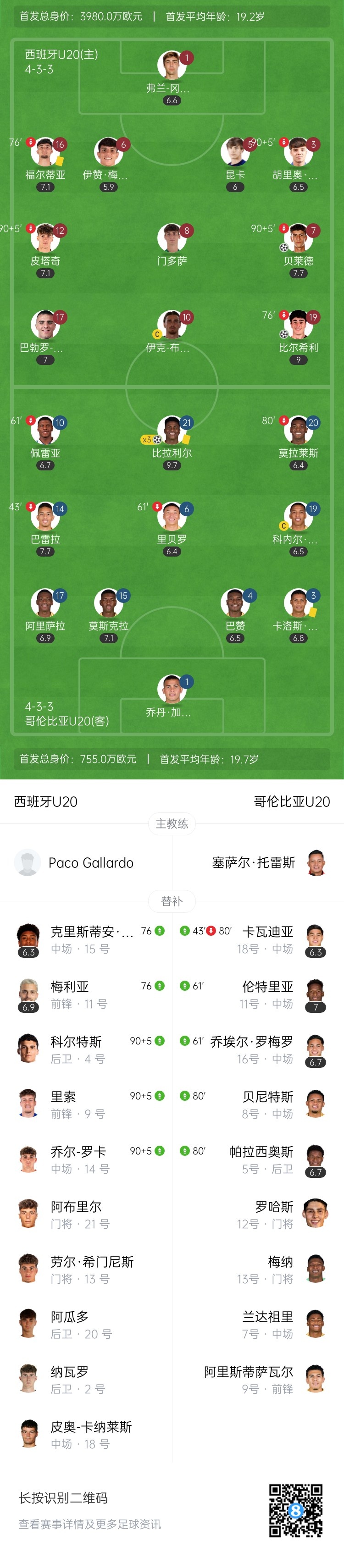 10月12日讯 世青赛1/4决赛,西班牙U20对阵哥伦比亚U20,比赛在菲斯卡体育场进行。上半场,比拉利尔破门为哥伦比亚取得领先。易边再战,西班牙3分钟2球反超比分,比拉利尔再次破门,第89分钟比拉利尔戴帽绝杀,最后时刻VAR取消西班牙点球。最终西班牙U20 2-3哥伦比亚U20。哥伦比亚将对阵墨西哥与阿根廷之间的胜者。