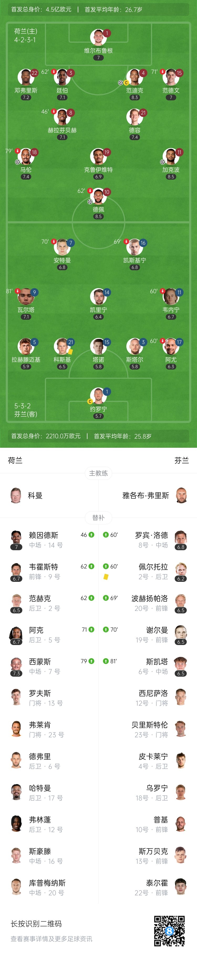 5胜1平不败领跑!荷兰4-0横扫芬兰 德佩1射2传加克波范迪克破门