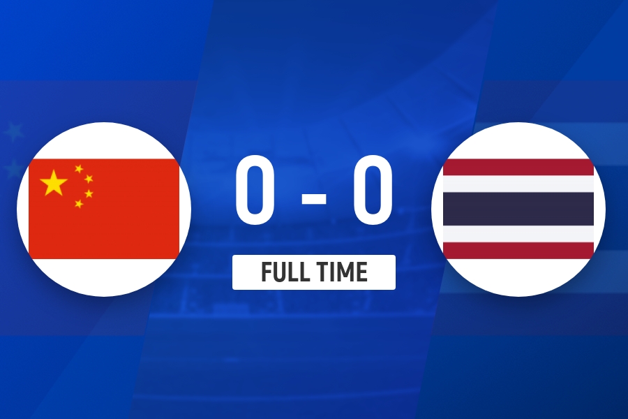 全场比赛结束,U22国足0-0泰国U23。