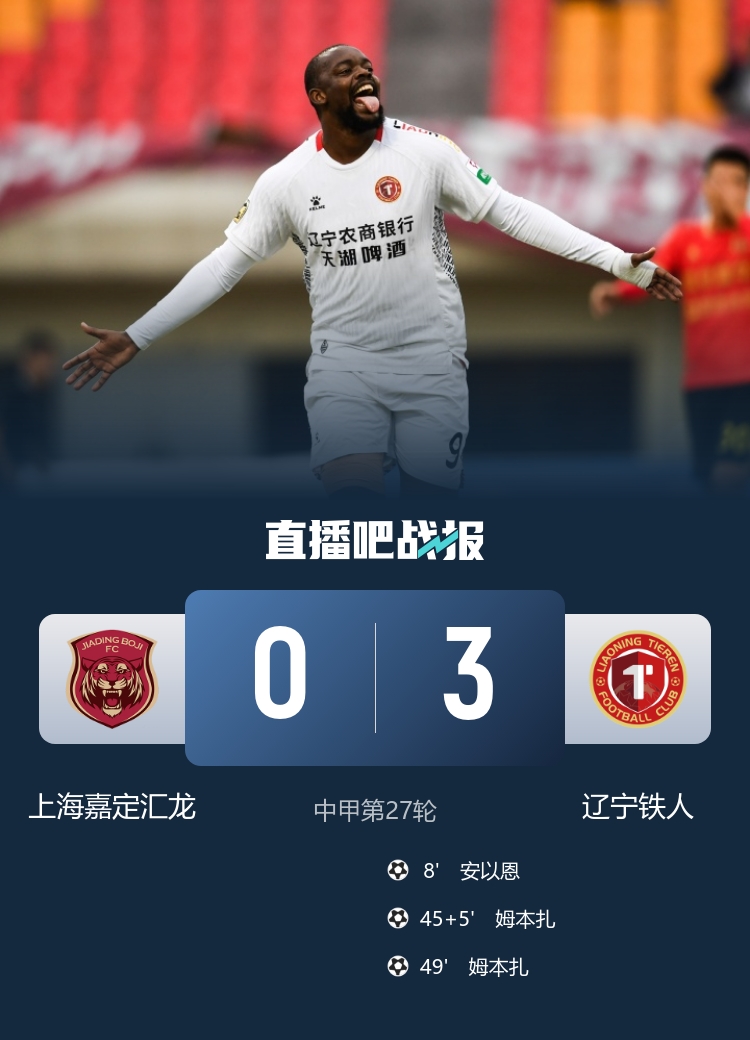 距冲超一步之遥!辽宁铁人3-0嘉定汇龙先赛9分领跑 姆本扎双响
