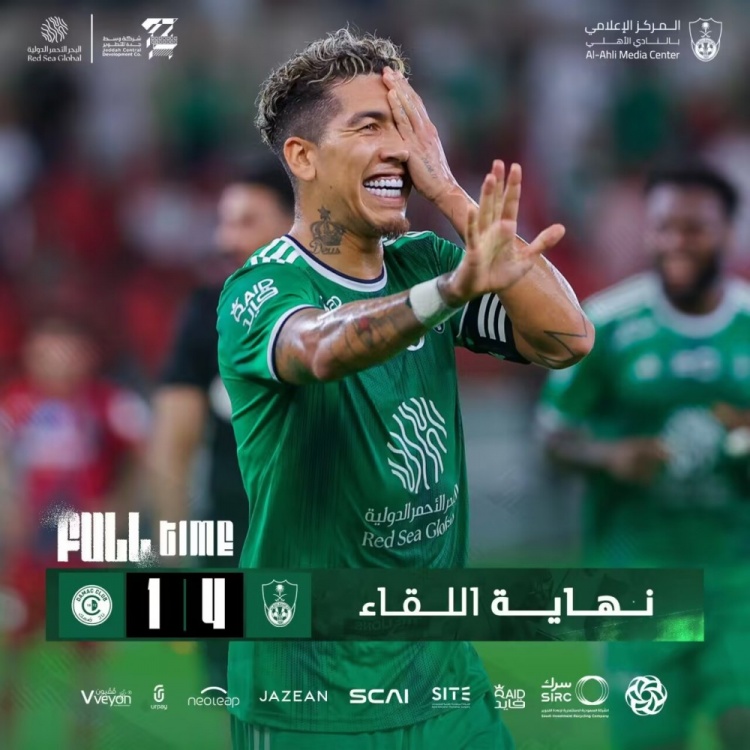 沙特联-吉达国民4-1达马克仍居第三 菲尔米诺传射马赫雷斯点射