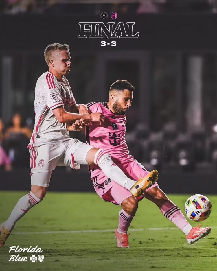 最终,迈阿密国际3-3圣路易斯城。