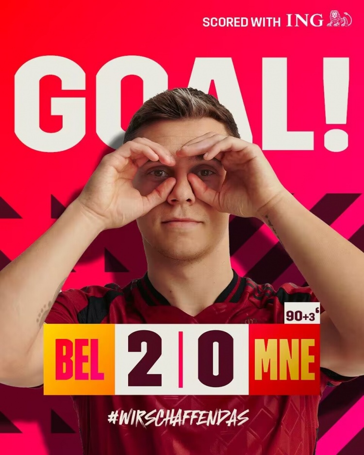 友谊赛-德布劳内国家队百场破门特罗萨德点射 比利时2-0黑山