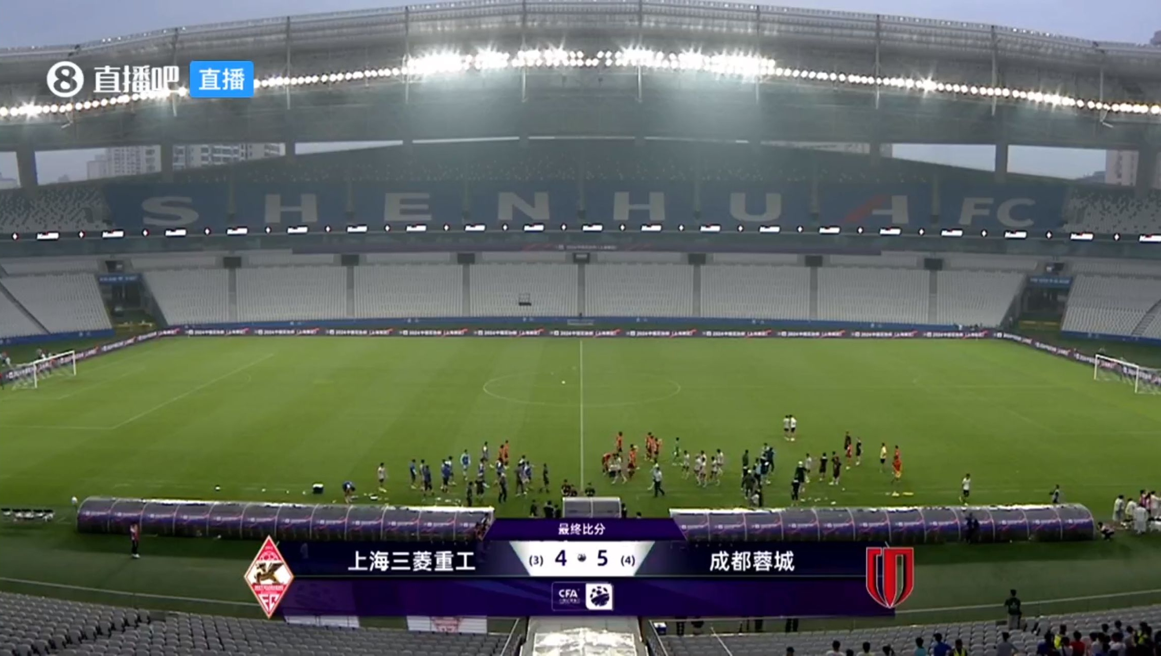 全场比赛结束,成都蓉城5-4上海长宁三菱重工。