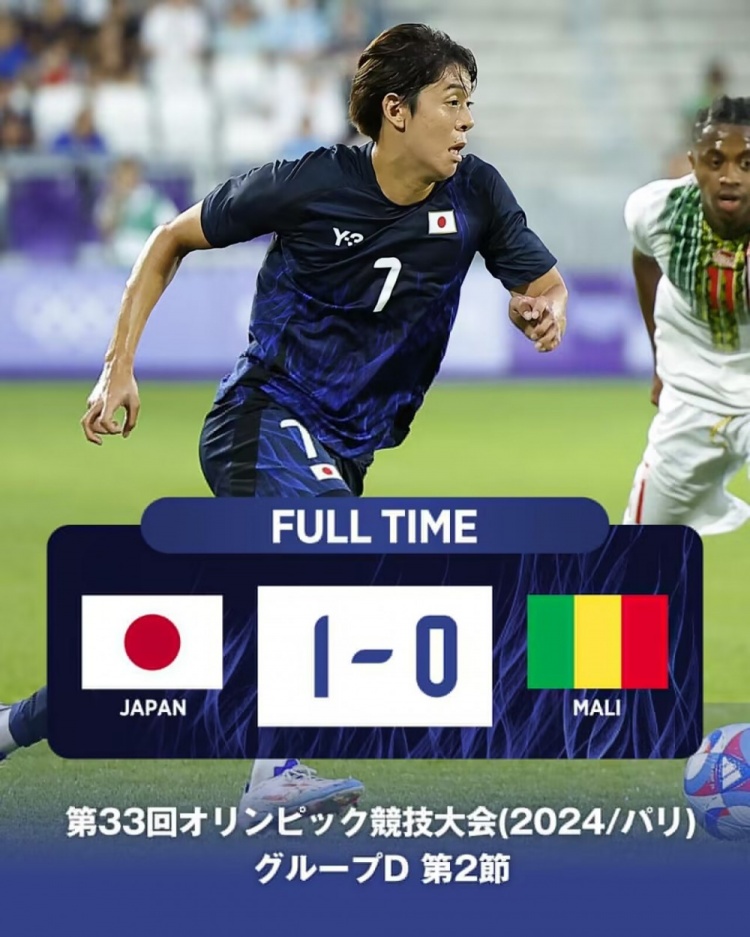 下半场补时5分钟,最终,日本国奥1-0马里国奥。